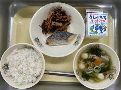 牛乳 ごはん 焼き魚 ひじきの炒め煮 お月見汁