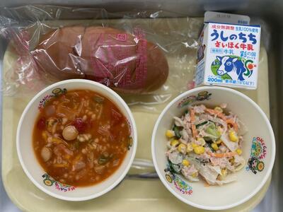 牛乳 黒パン ミネステ麦麦リゾット ツナサラダ