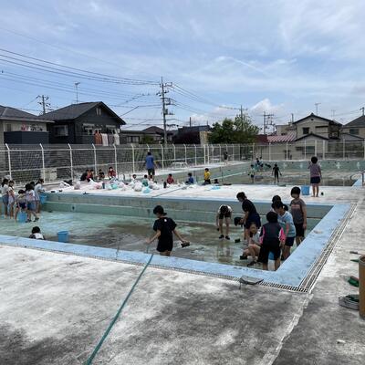 本日、5年生がプール清掃を行いました。6月からのプールでの授業に向けて5年生が力いっぱい頑張ってきれいにしてくれました。