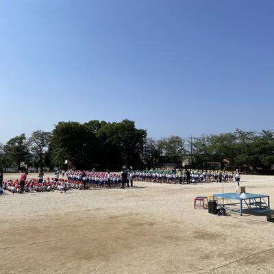 本日、来週の運動会に向けて、全体練習を朝から1時間目にかけて行いました。