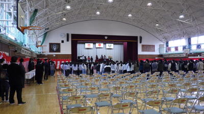 修了式 投稿: 情報担当 (11:34) 体育館にて修了式を行いました。 校長先生のお話し、代表生徒の振り返りの発表や、1年生から5年生、あすなろ学級の代表が修了証と来年度の名札の授与を行いました。 4月からの新しいクラスでも自分らしく、新しい友達と仲良く、日々の学習に励みましょう。 Tweet -