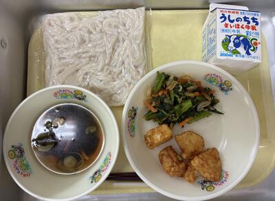 11/6の給食 投稿: 情報担当 (11/06) 牛乳 白だしわかめうどん みそポテト のらぼうあえ みそポテトは埼玉県秩父地方の郷土料理です。蒸したじゃがいもに衣をつけて揚げています。みそだれは給食室手作りです。 -