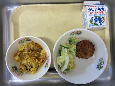 11/12の給食 投稿: 情報担当 (11/12) 牛乳 しゃくし菜とドライトマトの炊き込みご飯 きのこハンバーグ 花野菜サラダ しゃくし菜は、葉の形が「しゃもじ」に似ていることから、この名前がついたといわれています。特に、秩父地方で昔から作られている伝統野菜です。 -