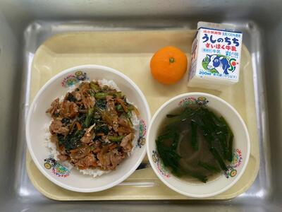 12/19の給食 投稿: 情報担当 (11:40) 牛乳 プルコギトッパプ トックスープ みかん 今日は、韓国料理のプルコギトッパプとトックスープの組み合わせです。「プルコギトッパプ」のプルは「火」、コギは「肉」、トッパプは[丼もの]を意味し、それらを組み合わせた韓国風焼肉丼です。 -
