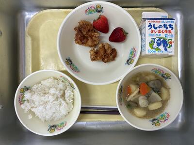 2/25の給食 投稿: 情報担当 (02/25) 牛乳 ご飯 ザンギ いも団子汁 いちご ザンギは北海道のソウルフードです。唐揚げに、よりしっかりとした味付けのものを指すようです。とっても人気があります。いちごは、「とちあいか」でした。 -