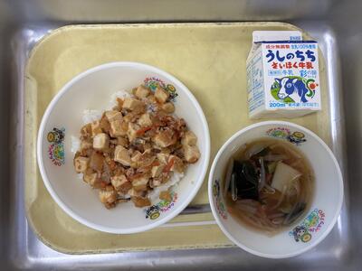 牛乳 マーボー丼 米粉のワンタンスープ